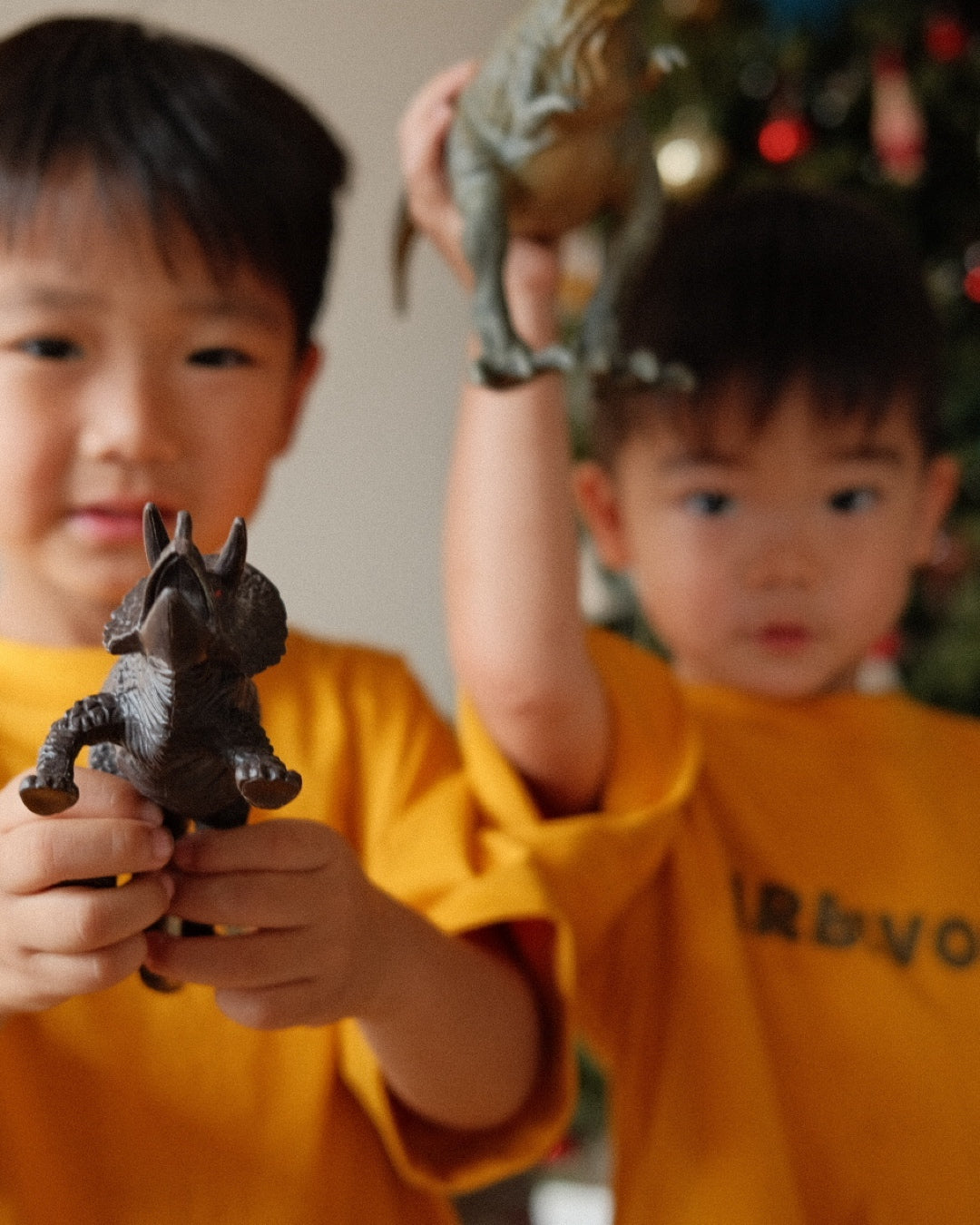 Second Image: Izzy (Left, 4 years) is wearing Size 4 & Olly (Right, 3 years) is wearing a Size 3. There is no need to size up for an oversized fit, however, if you are in between sizes, we recommend sizing up.
